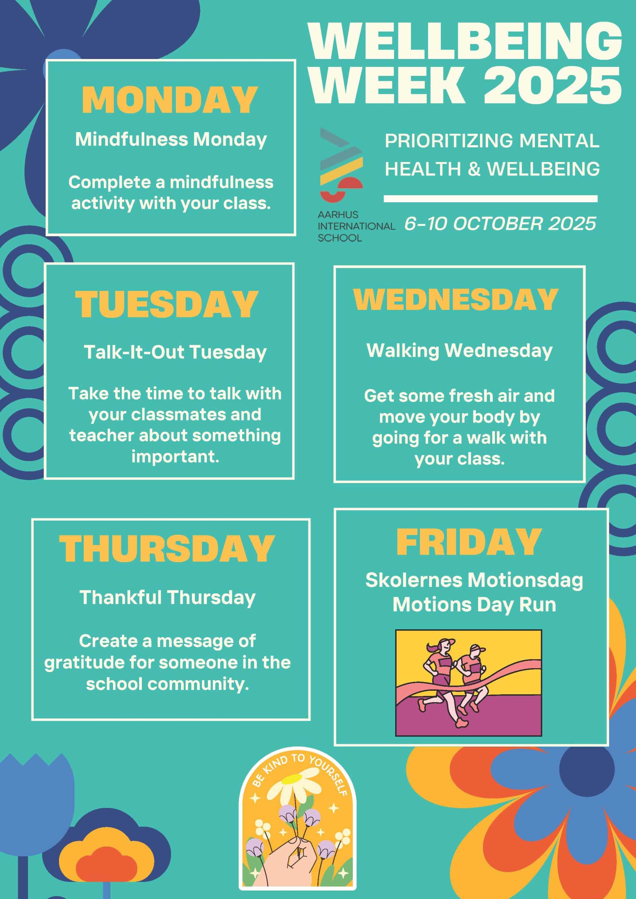 In October 2025, led by our school counsellor Megan Behnke, AIS led its first Wellbeing Week. Each day had a special focus that was introduced at the start of each day in order to get students in the right headspace and mindset for the rest of the day.