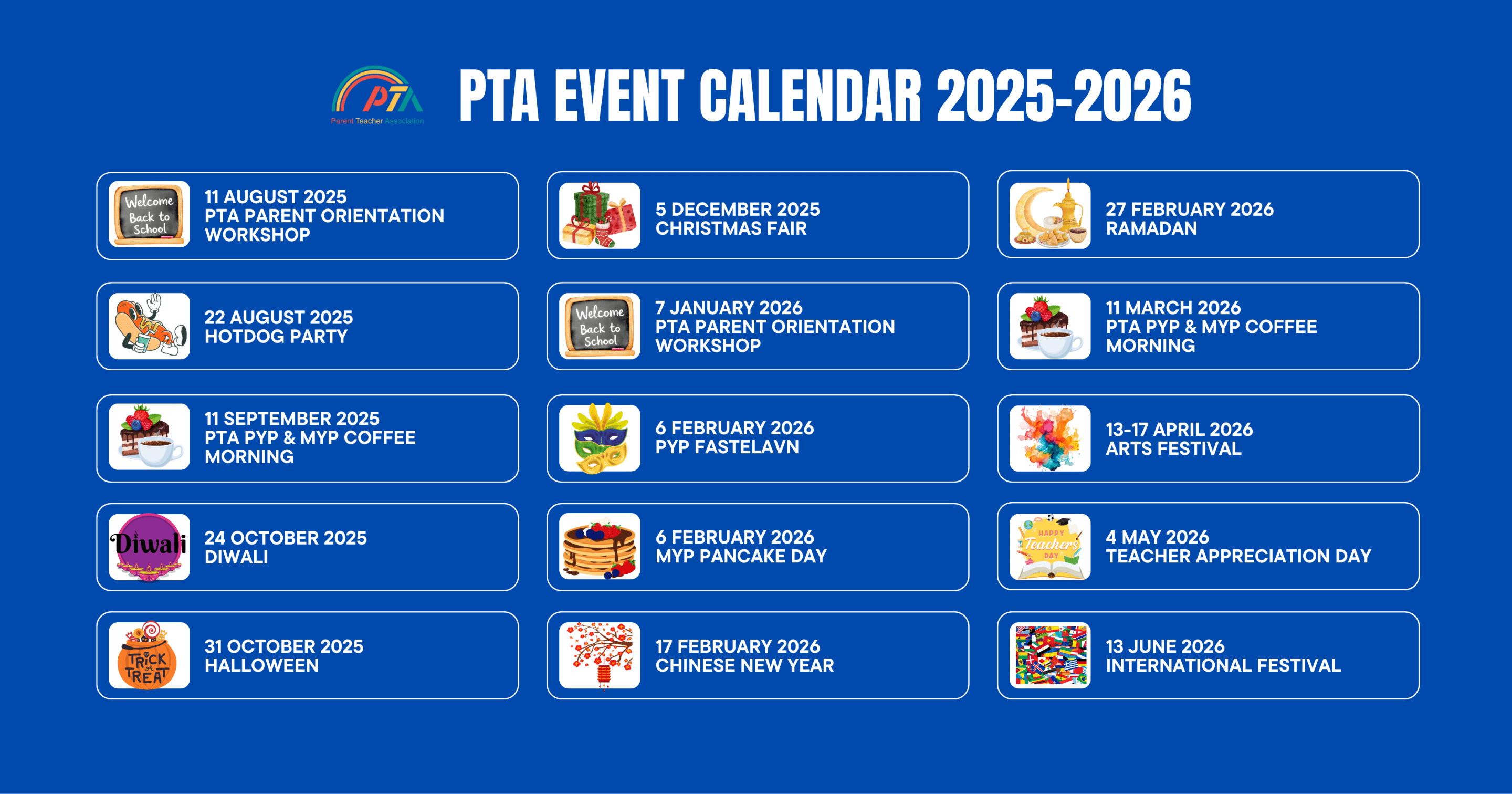 Throughout the school year, the PTA organises several major events to enrich school life and to bring the community together. These major events require a huge amount of support and team work, and what our PTA is able to achieve is nothing short of phenominal!